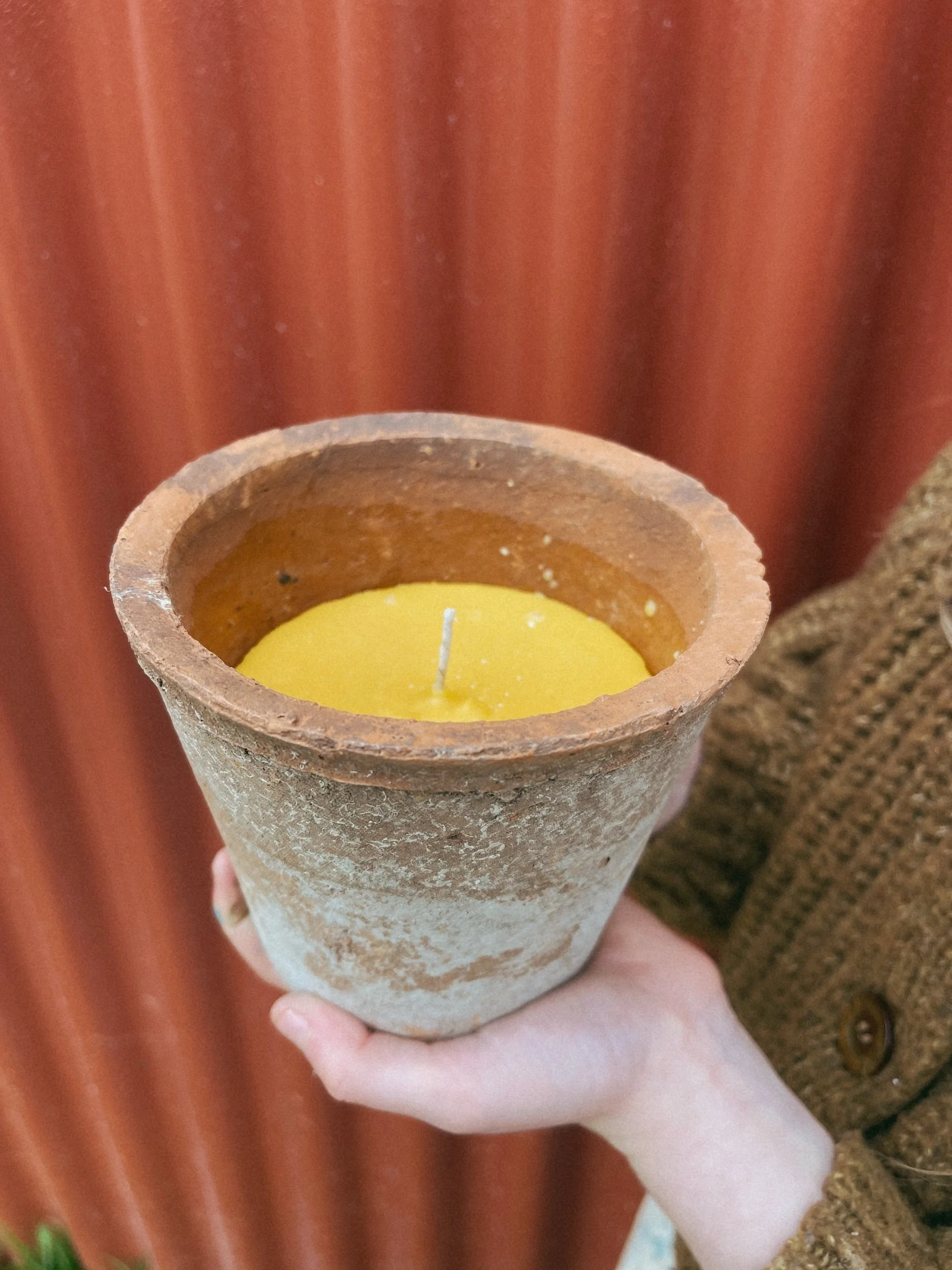 Crafted from ethically-sourced beeswax blended with tomato leaf essential oils, this candle burns cleanly with a gentle botanical scent and a soft warm glow. Each candle is hand poured into an antique terracotta plant pot and so each has a slightly irregular finish. A calm and naturally inspired addition to inspire a quiet moment at home.
